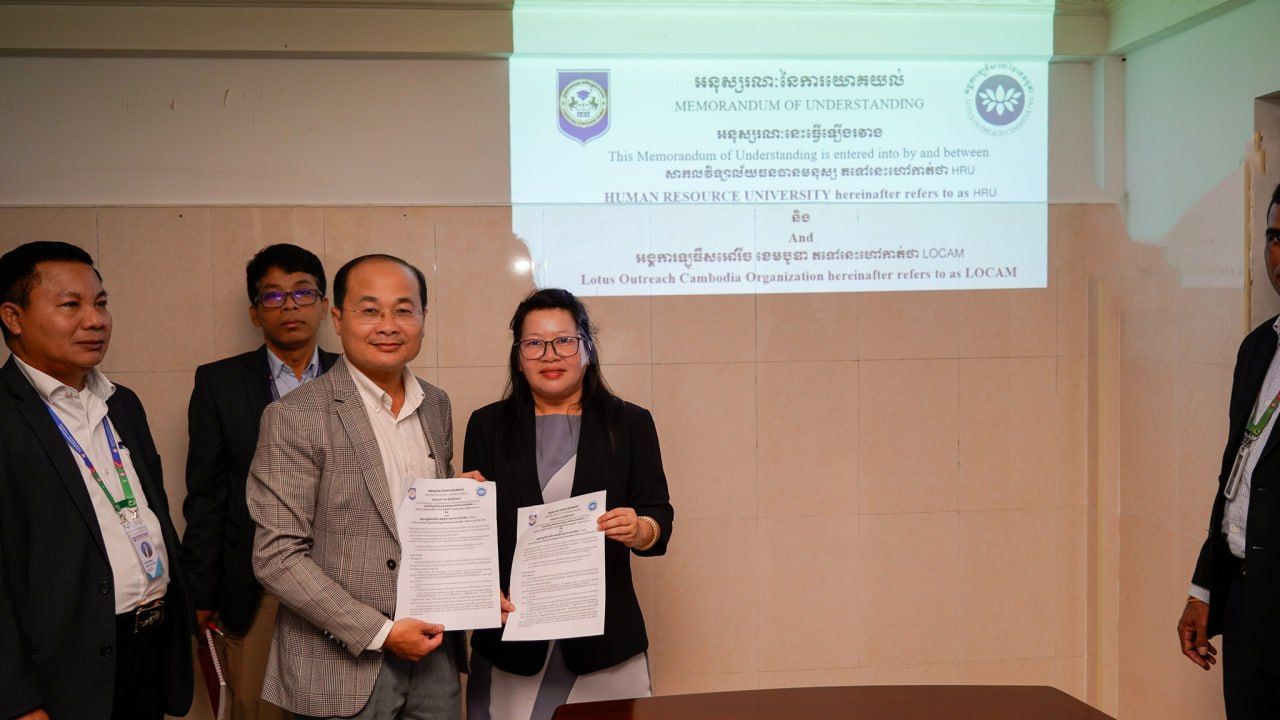 LOCAM: រសៀលថ្ងៃពុធ ទី៣ ខែធ្នូ ឆ្នាំ២០២៥ នៅទីស្នាក់ការអង្គការ Lotus Outreach Cambodia Organization (LOCAM) បានរៀបចំពិធីចុះ MoU ជាមួយសាកលវិទ្យាល័យធនធានមនុស្ស ដើម្បីជំរុញកំណើនការសិក្សានៅឧត្តមសិក្សា ជាពិសេសនិស្សិតជាស្រ្តី។